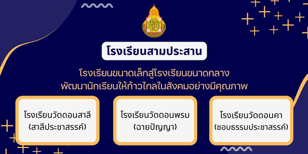 โรงเรียนสามประสาน เป็นการพัฒนาโรงเรียนขนาดเล็กสู่โรงเรียนขนาดกลาง พัฒนานักเรียนให้ก้าวไกลในสังคมอย่างมีคุณภาพ